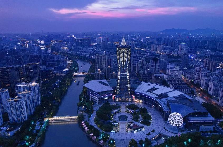 武林广场位于西湖之北,市区省展览馆前面。因场处武林门地片内,故名。四周新建高楼林立,有电信大楼、杭州大厦、杭州剧院、杭州国际大厦、杭州百货大楼等。遂成杭城繁华而花园式的中心广场,一九八五年建成广场喷泉,泉池直径为36米,形似五瓣梅花,花芯为跳红瞅舞的三少女塑像。五个花瓣有五个少女塑像,各手操乐器,或琵琶半抱,或轻吹芦笙,或长笛斜倚,或弹拨箜篌。群雕形象生动,呈现出载歌载舞的气氛。每当欢庆节之夜,随着八个灯柱上的音响,奏起悦耳的民族乐曲,主喷泉即飞出33米高的水花,似兰花、似水杉、丝喇叭花等,和池周一白只小喷头弹出弧线,衬托出水中75只彩灯,光怪陆离,璀灿夺目。此处已成为杭州美丽的景点。